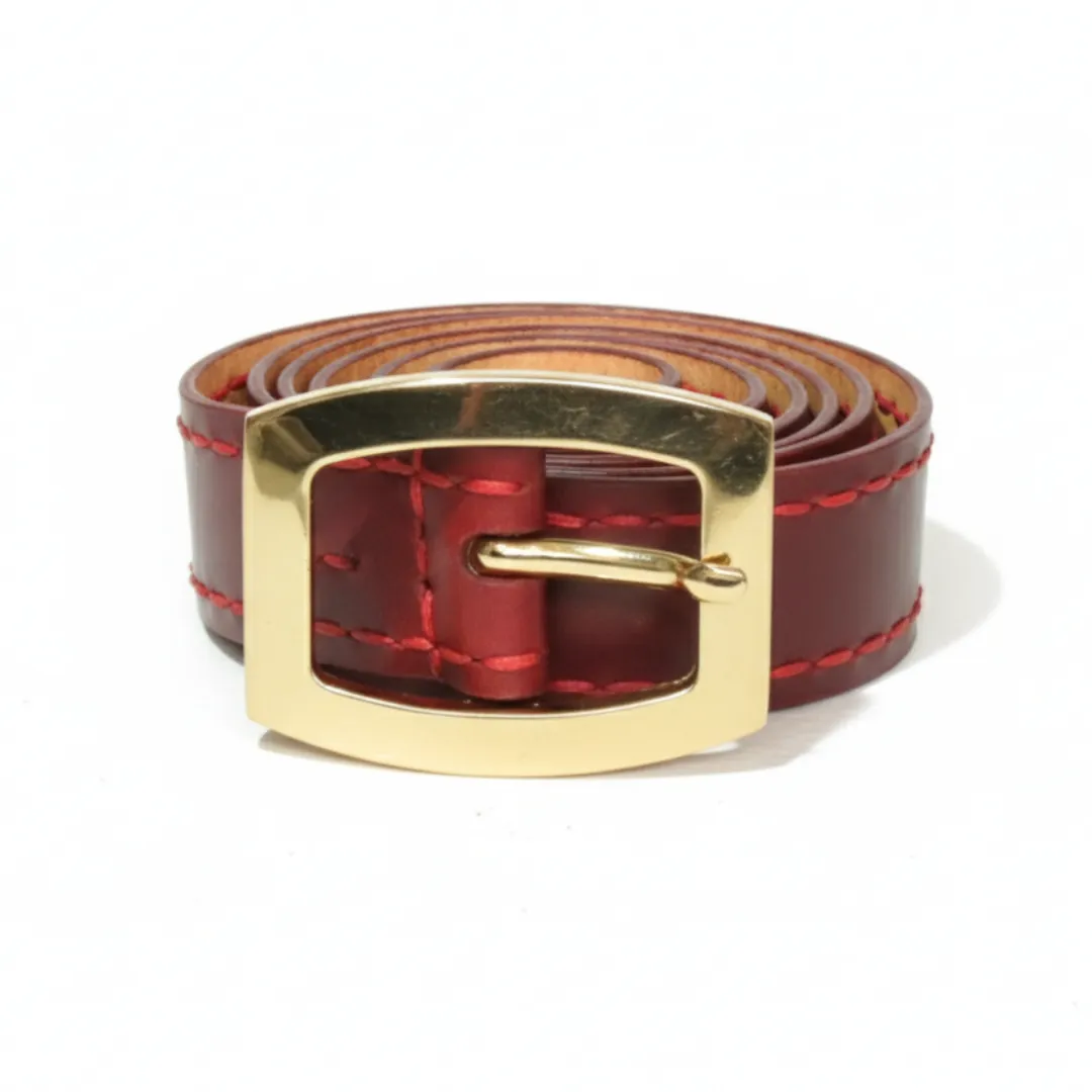 “Un cinturón robusto en 100% cuero, donde el pespunte a mano en hilo de contraste no es un adorno, sino una declaración de autenticidad y carácter.”