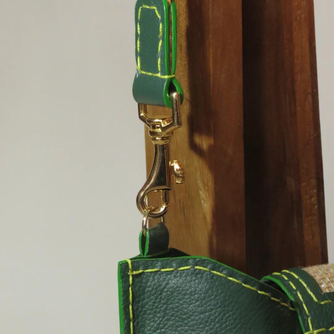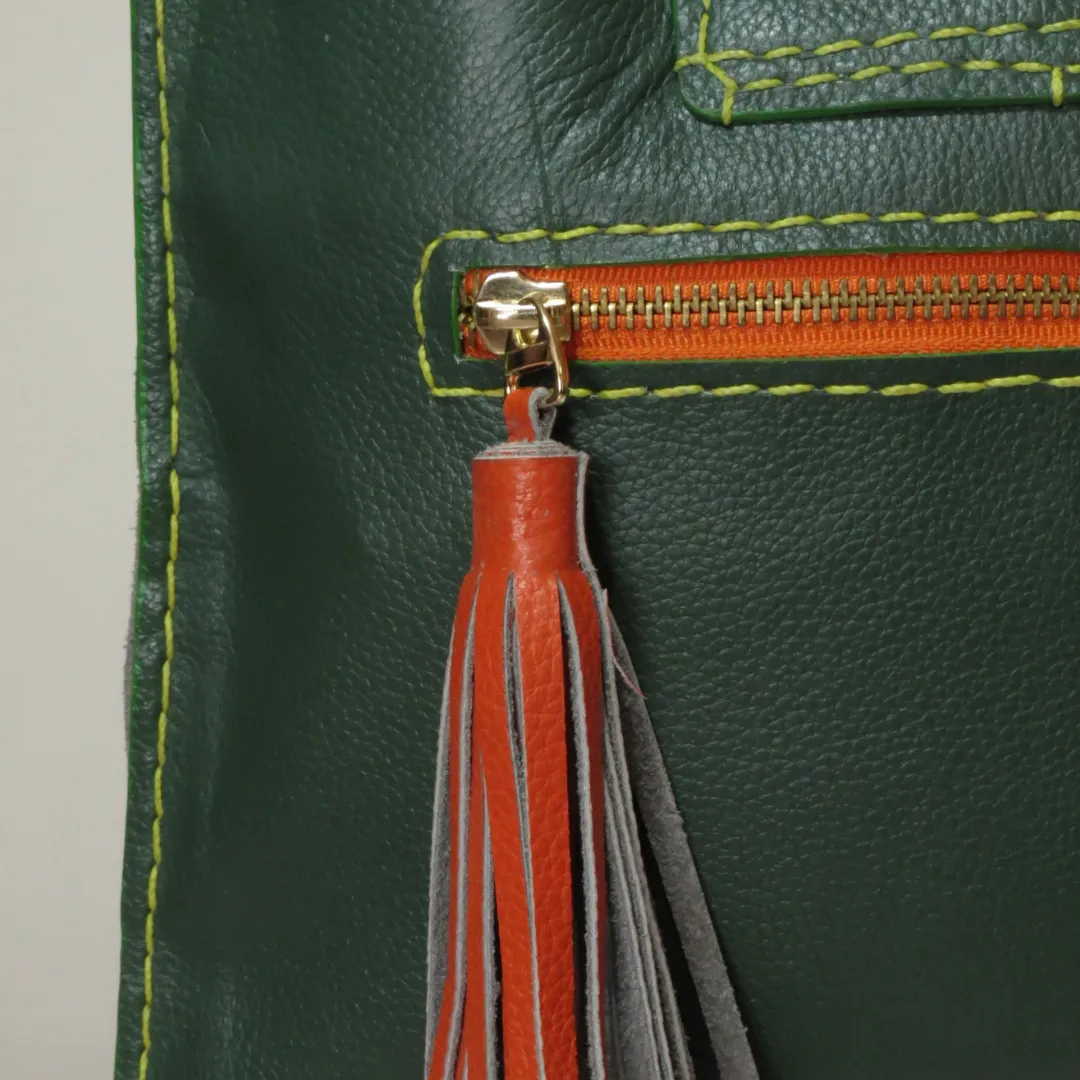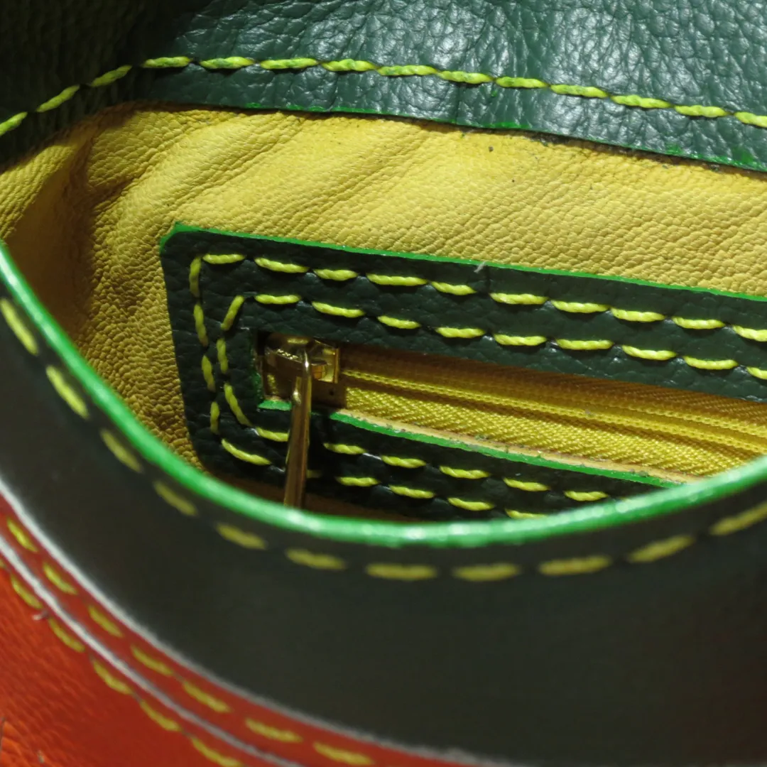 Material: Cuero, flecos multicolor y solapa en telar rústico.